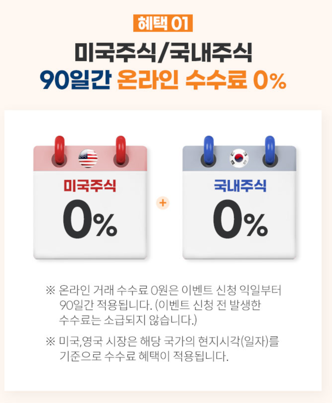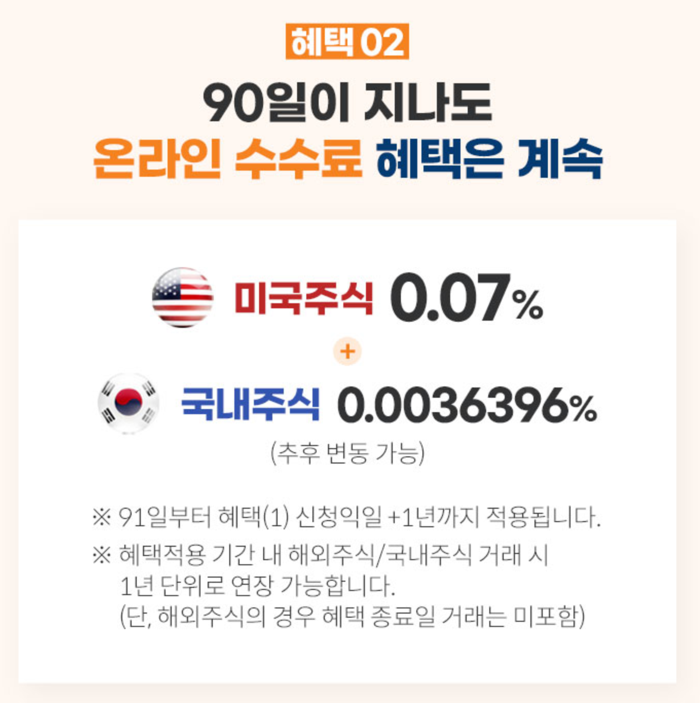 미래에셋증권에서도 신규/휴면고객에게 90일간 수수료가 무료인 이벤트를 진행중입니다. 미국주식과 국내주식 모두 수수료 혜택을 받을 수 있다는 장점이 있습니다. 이벤트는 올해 6월 30일까지입니다. 조건은 비대면으로 계좌개설을 해야 수수료 혜택을 받을 수 있습니다. 미래에셋증권 수수료 이벤트도 확인해보세요.