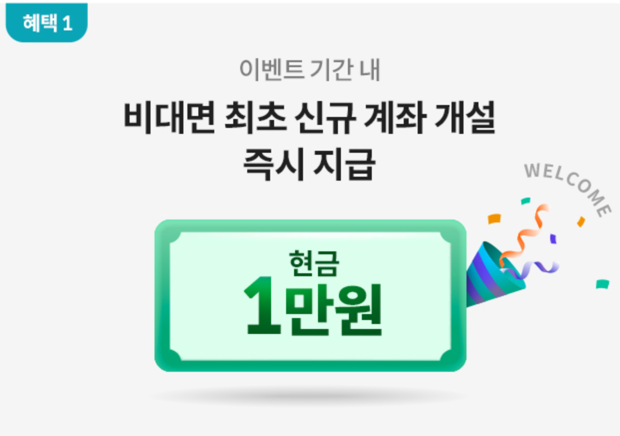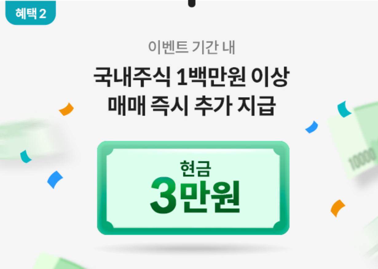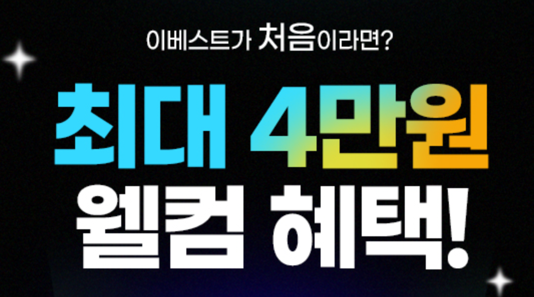 마지막으로 이베스트투자증권에서도 이벤트를 진행중인데요. 수수료 혜택이 아니라 현금 지급입니다. 신규로 계좌 개설하면 바로 1만원 지급하고 국내 주식 백만원 이상 매매시 즉시 3만원 추가 지급된다고 합니다. 역시나 조건은 비대면으로 계좌개설을 해야 합니다.