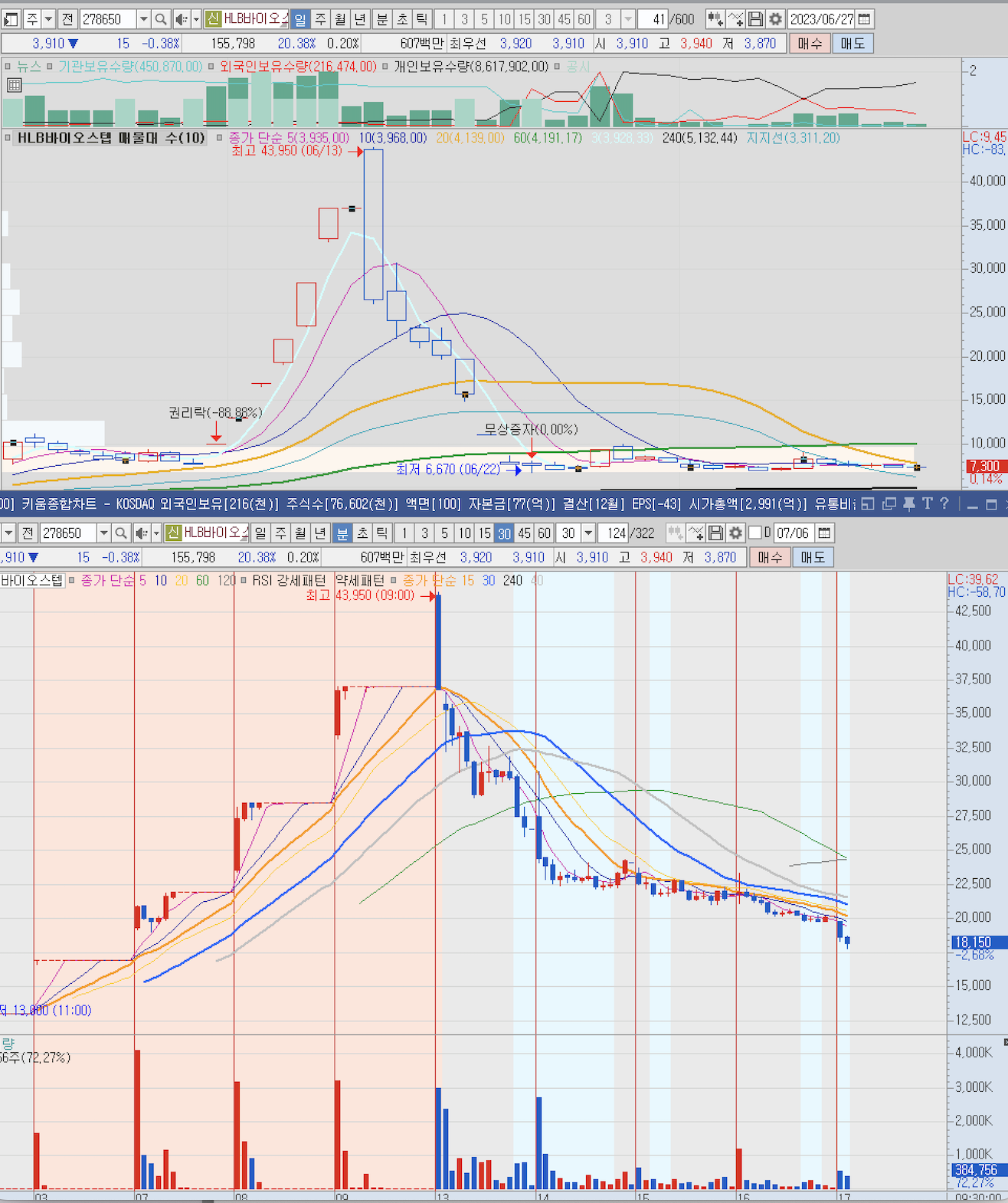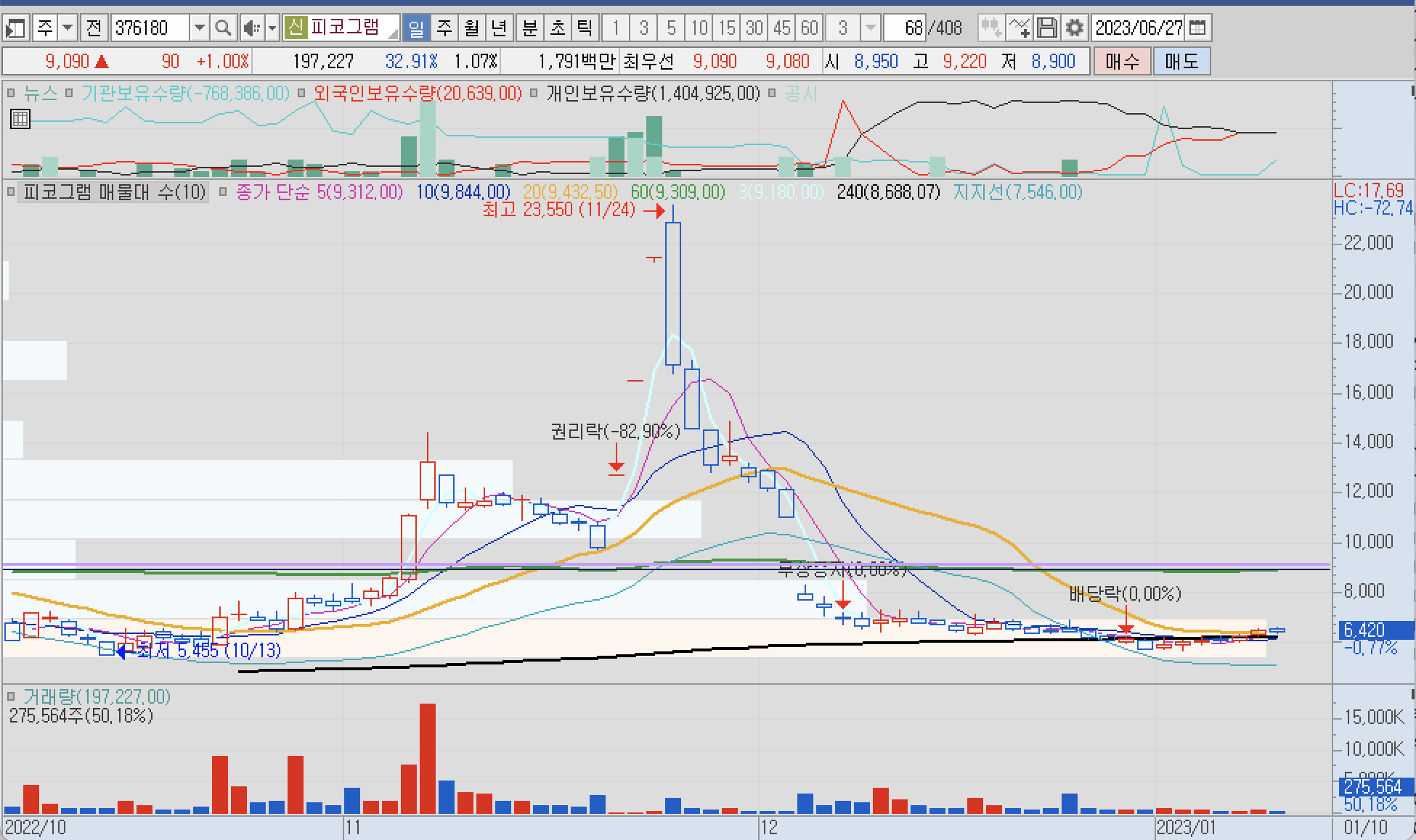아래는 최근 무상증자 권리락날 상승하거나 하락했던 종목들 추이표입니다.