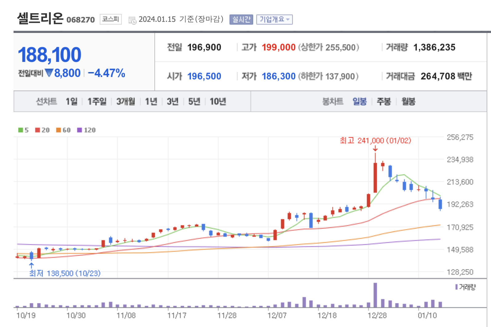 셀트리온 과거 주가 분석