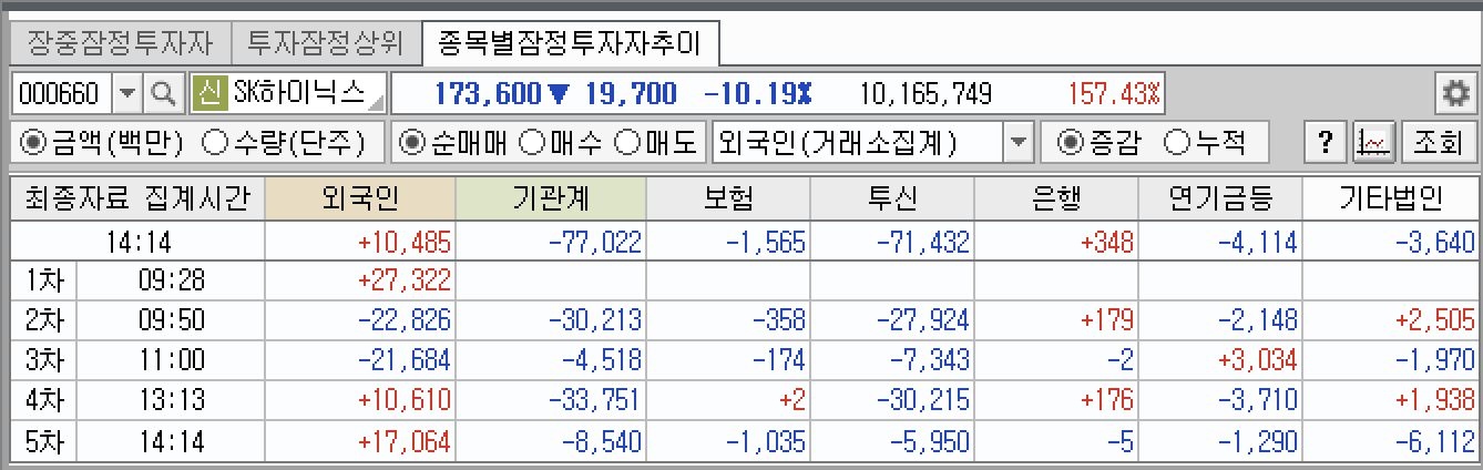 SK하이닉스 주가가 60일선까지 깨고 급락한 이유는 많은 개인 투자자들이 굳건할 것 같았던 미장이 빠지면서 공포감에 휩싸여 매도에 나섰기 때문이라고 분석됩니다.
